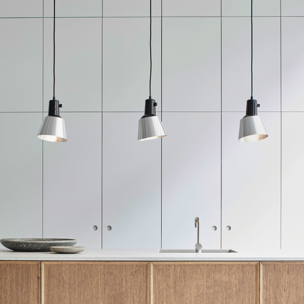 Material: Powder-coated aluminum shade; powder-coated steel frame; fabric covered cord.