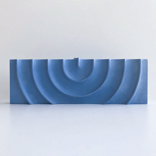 The Ripple Menorah seamlessly fuses industrial aesthetics with timeless tradition. Crafted from concrete, this piece exudes the essence of minimalist sculpture, making a bold statement during Hanukkah celebrations. Given the intrinsic properties of concrete, variations in color depth and surface details are to be expected, bestowing upon each set its own distinct charm.